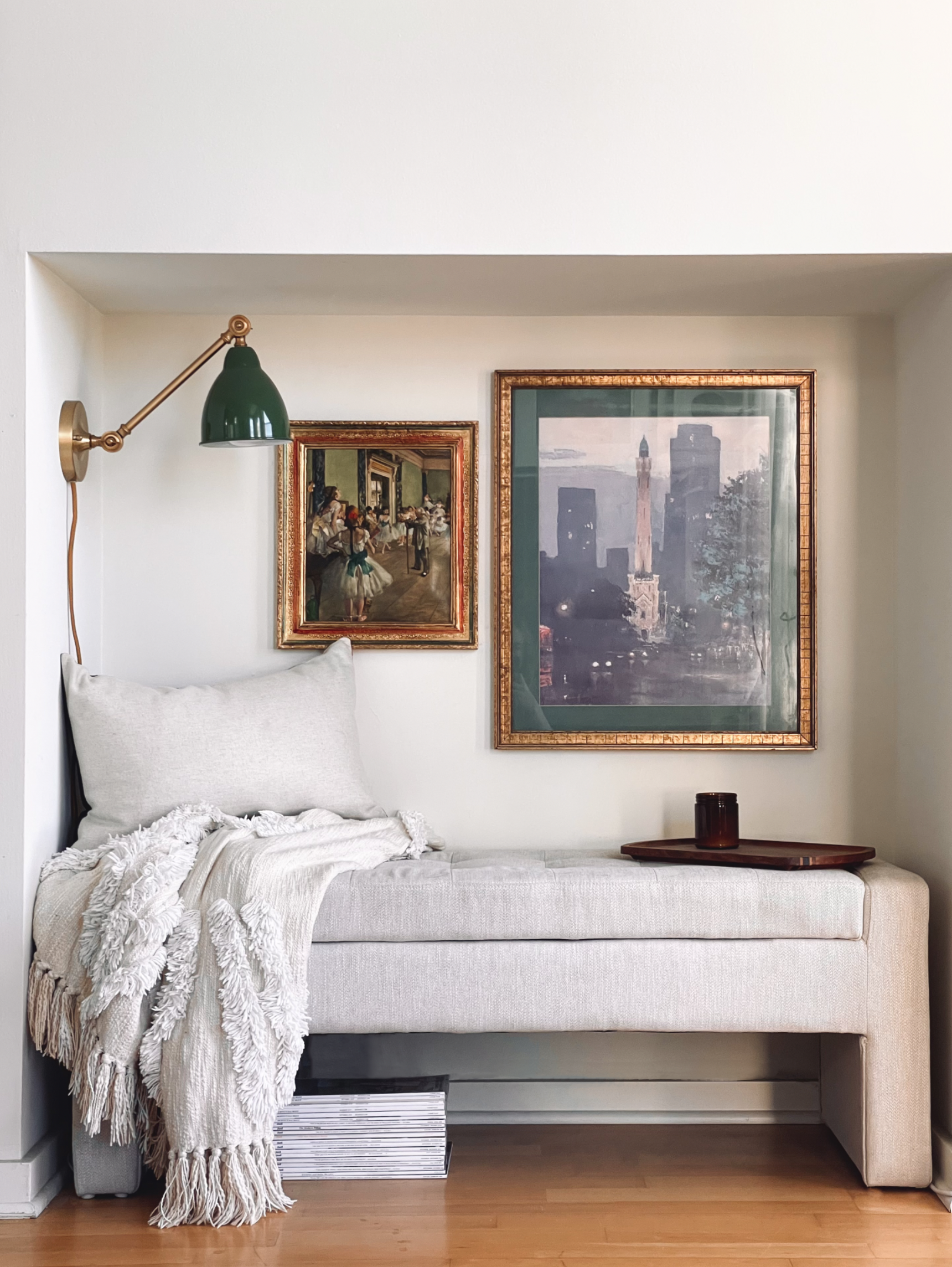 In a spacious studio apartment, a small family with big personality found their home. We revitalized their space with a lively palette, plush textures, and whimsical accents, crafting snug yet eclectic corners throughout. A harmonious blend of vintage charm and contemporary flair brought this playful and cozy abode to life.